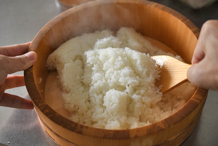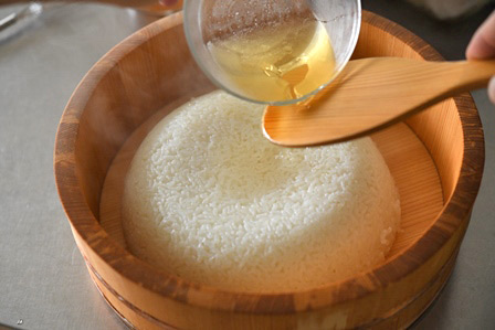 ①酢飯(すめし)の準備 V:Chuẩn bị cơm dấm (sumeshi) I:Persiapan nasi cuka (sumeshi)