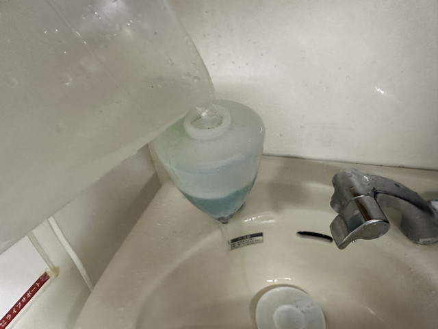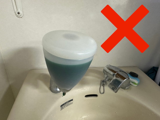 手洗い石鹸を原液でいれないようにしてください。器具が破損します。 V:Vui lòng không sử dụng xà phòng rửa tay không pha loãng. Thiết bị sẽ bị hư hỏng. I:Tolong jangan gunakan sabun tangan yang tidak diencerkan. Peralatan akan rusak.